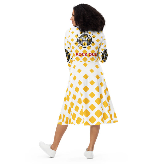 ¡ROCK OUT! - Vestido midi de manga larga con estampado integral - ELLACO